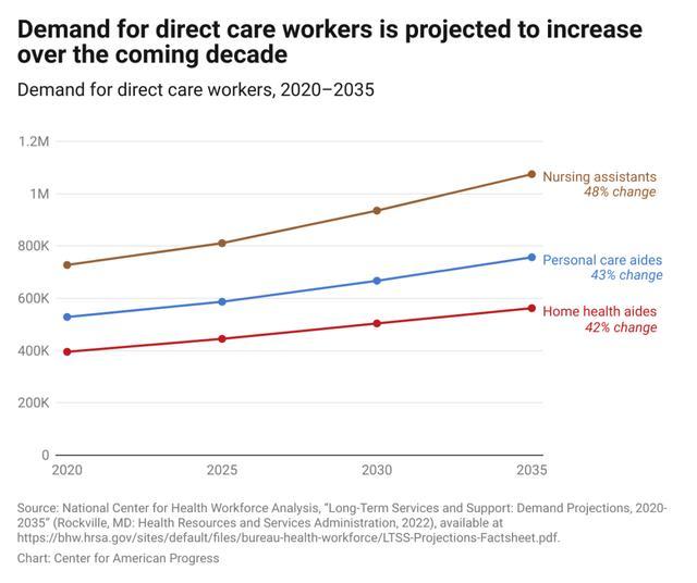 根据PHI(美国长期护理工人权益机构)发布的《Direct Care Workers in the United States: Key Facts 2025》报告,2024至2034年间,居家护理行业将面临超过610万个岗位空缺。