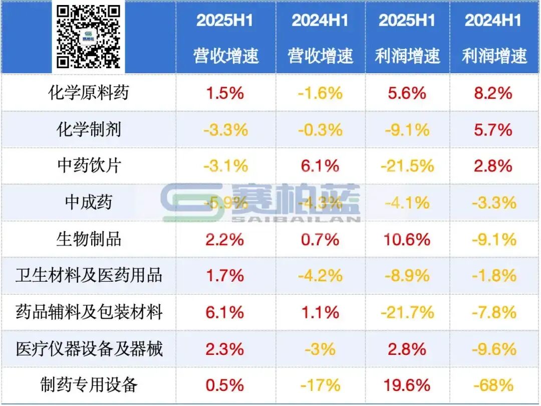 中国医药企业管理协会公布的2025年上半年医药工业情况数据显示,在9个子行业中,化学制剂、中成药和中药饮片这三大领域营收与利润增速均出现了双双下滑,且与2024年同期相比,下滑趋势更为明显。