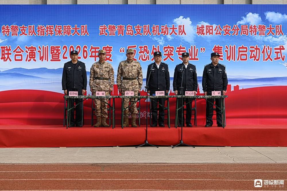 r日前,青岛市公安局特警支队指挥保障大队联合武警驻青某部和城阳公安分局特警大队,在武警李沧区训练基地隆重举行联合演训暨专业集训启动仪式,正式拉开2026年度反恐处突实战训练帷幕。